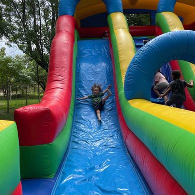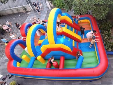 Muy divertido para edades variadas. El mini cuenta con un tobogán que te lleva al interior del inflable donde encontrarás divertidos obstaculos para jugar.